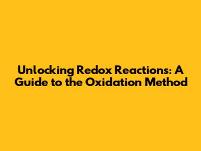 Unlocking Redox Reactions: A Guide To The Oxidation Method